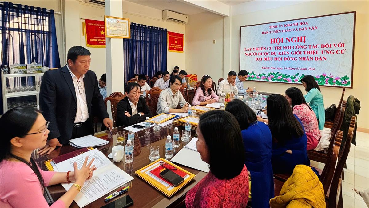 Chiều ngày 10/01, Ban Tuyên giáo và Dân vận Tỉnh ủy tổ chức Hội nghị lấy ý kiến cử tri nơi công tác đối với người được dự kiến giới thiệu ứng cử đại biểu Hội đồng nhân dân đối với đồng chí Võ Hoàn Hải - Ủy viên Ban Thường vụ Tỉnh ủy, Trưởng ban Tuyên giáo và Dân vận Tỉnh ủy.