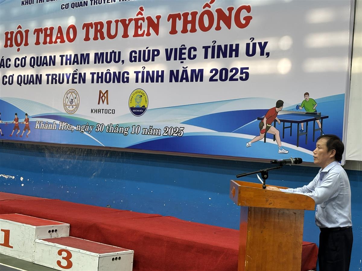 Chiều ngày 30/10, tại Trung tâm Văn hóa và Dịch vụ công ích phường Nha Trang (Số 12 Thi Sách, phường Nha Trang) Hội thao truyền thống Khối Thi đua các cơ quan tham mưu Tỉnh ủy, cơ quan truyền thông tỉnh năm 2025 chính thức Bế mạc.