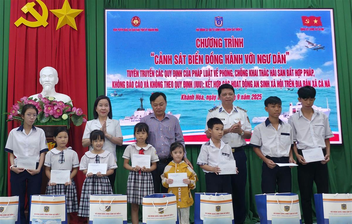 Ngày 20/9/2025, tại xã Cà Ná (tỉnh Khánh Hòa), Ban Tuyên giáo và Dân vận Tỉnh ủy Khánh Hòa phối hợp với Hải đoàn 32 - Bộ Tư lệnh Vùng Cảnh sát biển 3 cùng các lực lượng, địa phương tổ chức chương trình “Cảnh sát biển đồng hành cùng ngư dân”.