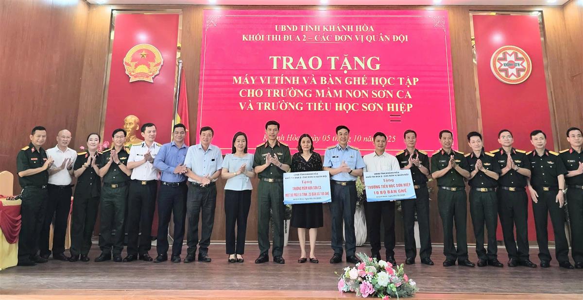 Sáng ngày 05/10/2025, Khối thi đua 2 - các đơn vị quân đội đóng quân trên địa bàn tỉnh phối hợp cùng Ban Liên lạc truyền thống Cựu chiến binh Sư đoàn 305 dù, đặc công Tây Nam bộ và Hội thiện nguyện “Chung một nhịp đập Sài Gòn” tổ chức tặng quà cho các trường học, gia đình, thiếu nhi có hoàn cảnh khó khăn tại xã Khánh Sơn.