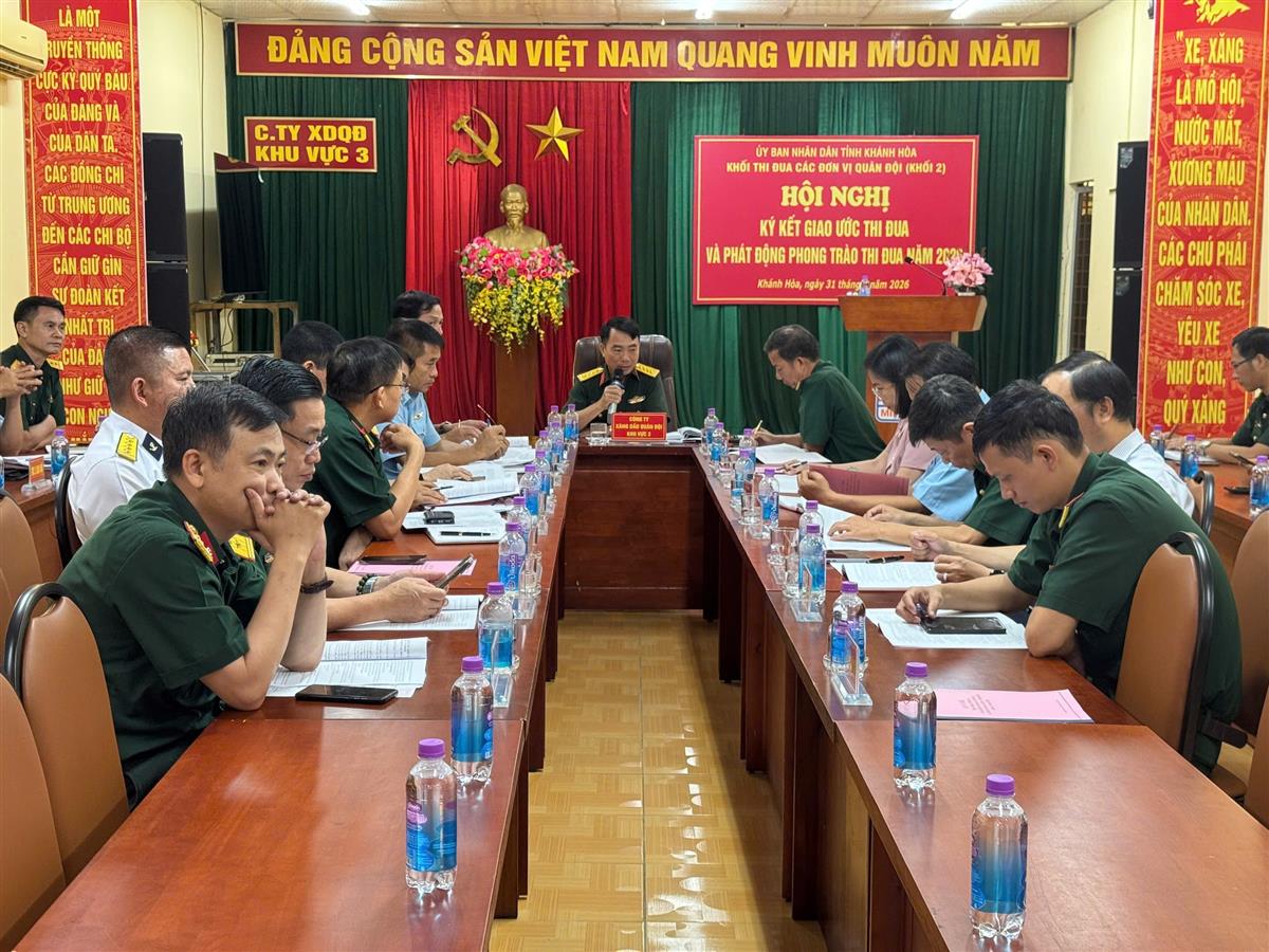 Chiều 31/3/2026, tại Công ty Xăng dầu Quân đội Khu vực 3, Khối thi đua các đơn vị Quân đội (Khối 2) tổ chức Hội nghị ký kết giao ước thi đua năm 2026. Đại tá Nguyễn Đức Đóa, Phó Giám đốc Công ty Xăng dầu Quân đội Khu vực 3, Trưởng Khối thi đua 2 chủ trì hội nghị.