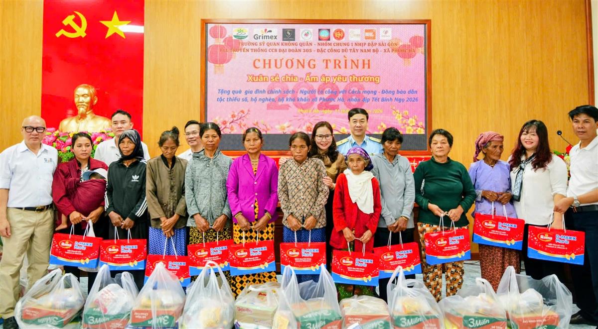 Nhân nhân dịp Tết Nguyên đán Bính Ngọ 2026, sáng ngày 11/02/2026, Trường Sĩ quan Không quân đã phối hợp với cấp ủy, chính quyền địa phươngtổ chức Chương trình “Xuân sẻ chia - Ấm áp yêu thương” tặng quà các gia đình chính sách, người có công với cách mạng, đồng bào dân tộc thiểu số, hộ nghèo, hộ có hoàn cảnh khó khăn trên địa bàn xã Phước Hà.
